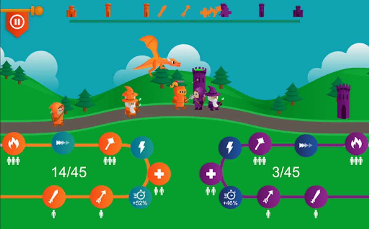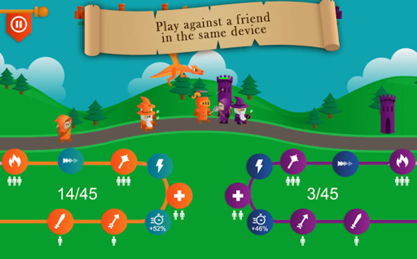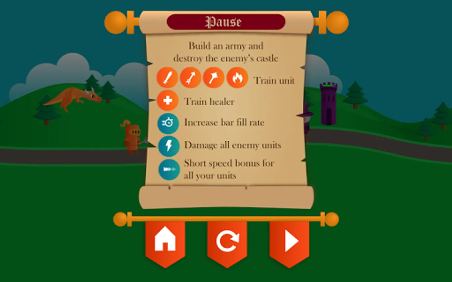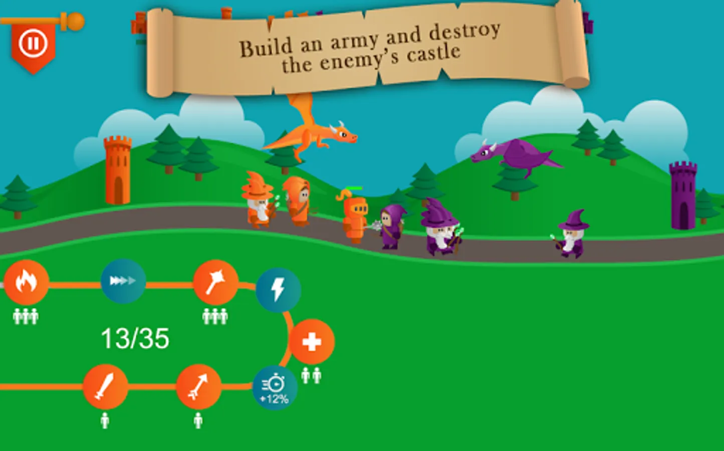 Create an army of swordsmen, archers, mages, knights and dragons to destroy your enemy.