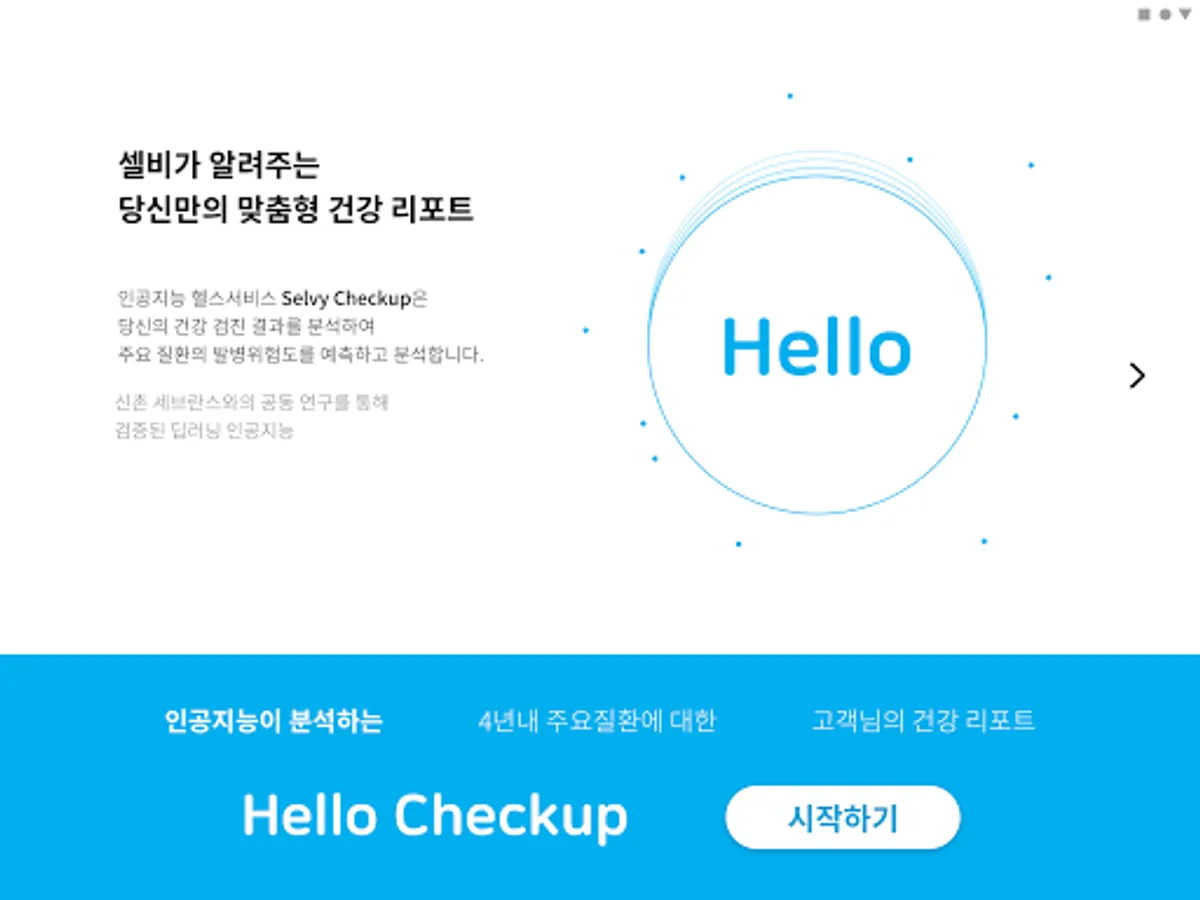-Enter only the results of the medical examination and brief medical information. Deep Learning AI Solutions Selvy Checkup analyzes key health risks and provides reports.