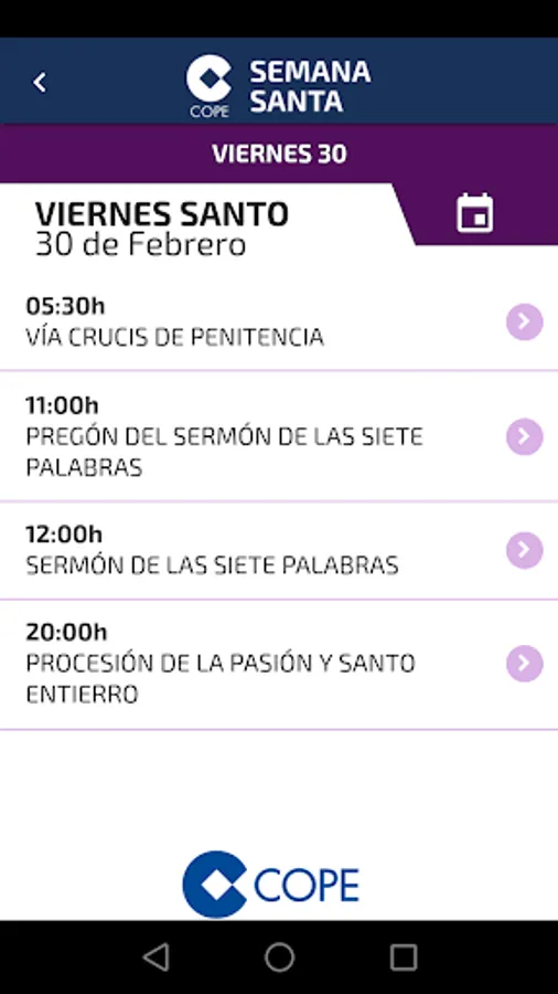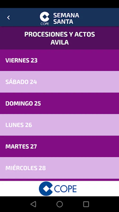 Easter CyL is the application of the COPE Castilla y León chain with scheduling Easter in Castilla y León.