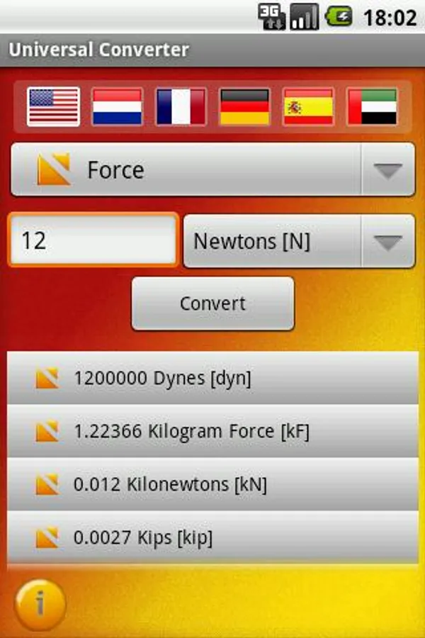 The application is very easy to use and supports multiple resolutions with support of Android OS 1.5+ . All you have to do is, open the application and then select two units for conversion then type in your value and click on 'convert' to get instant results.