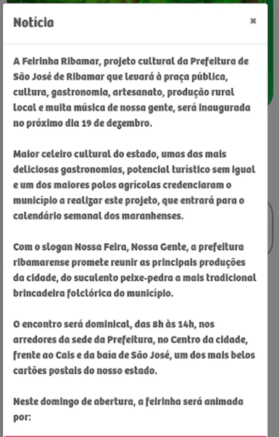 The Feirinha Ribamar, cultural project of the City of São José de Ribamar that will bring culture, gastronomy, handicrafts, local rural production and a lot of music from our people to the public square, will be inaugurated on December 19th.