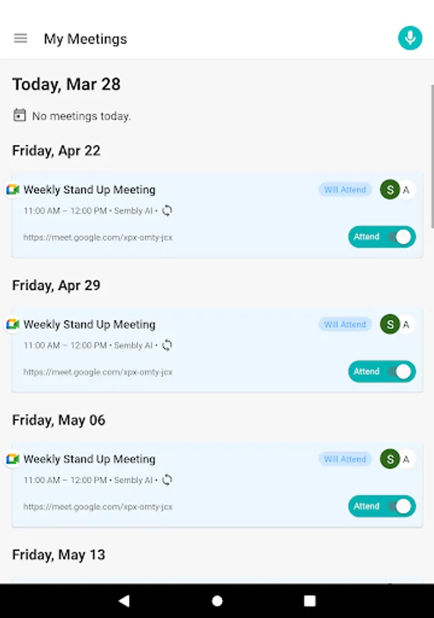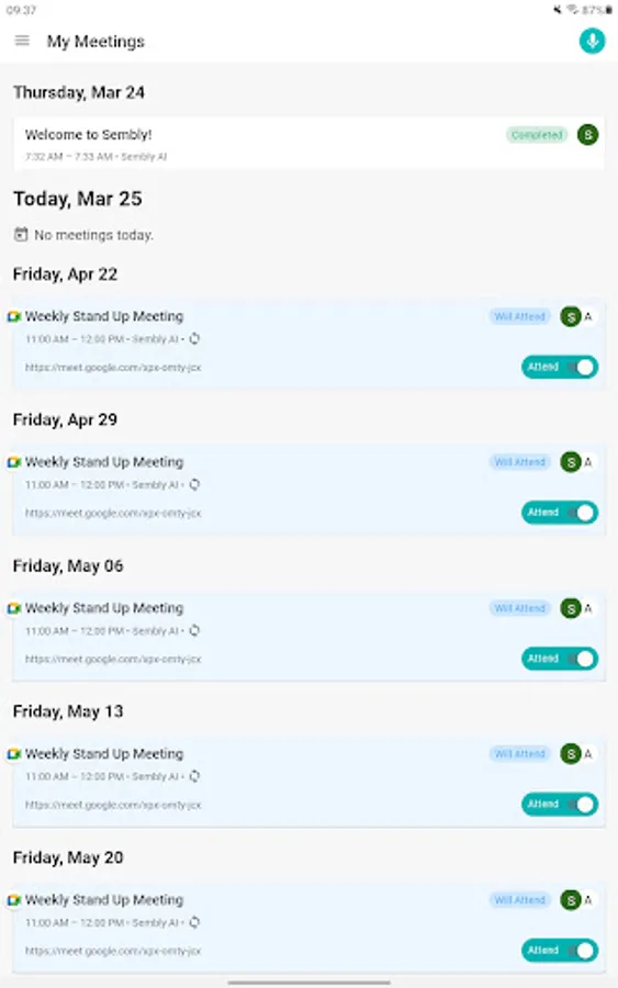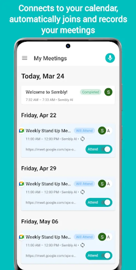 Sembly takes meeting notes for you: it syncs with your calendar and joins your Google Meet, Microsoft Teams, and Zoom calls.