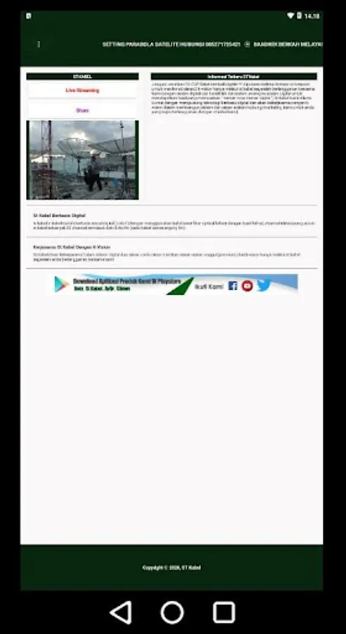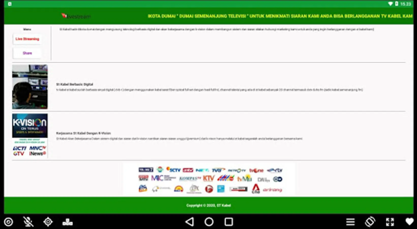 ST Cable application can make it easier for new customers who want to register to subscribe to ST Cable and not only that ST Cable application also provides a complaint form in the event of an ST cable broadcast disturbance at your home and ST Cable also provides live streaming watching