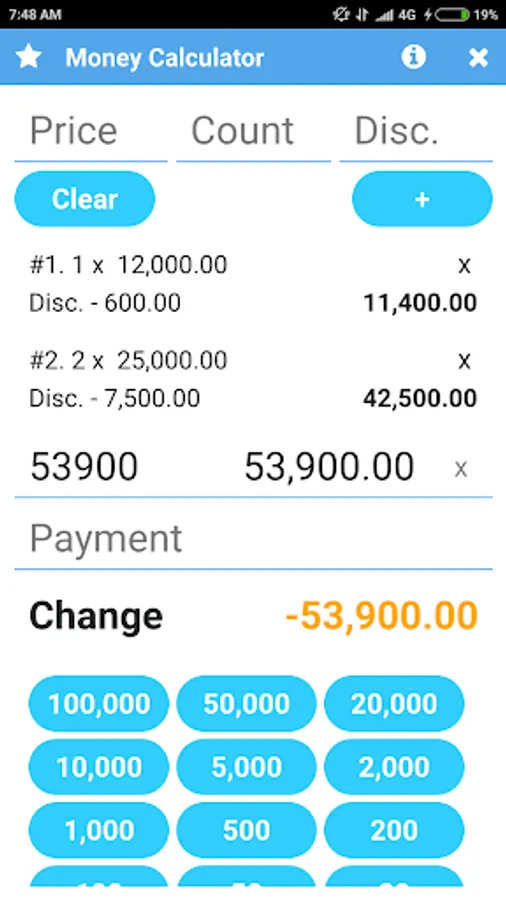Money Calculator is an app to help you calculate faster for changes with a suggestive information.