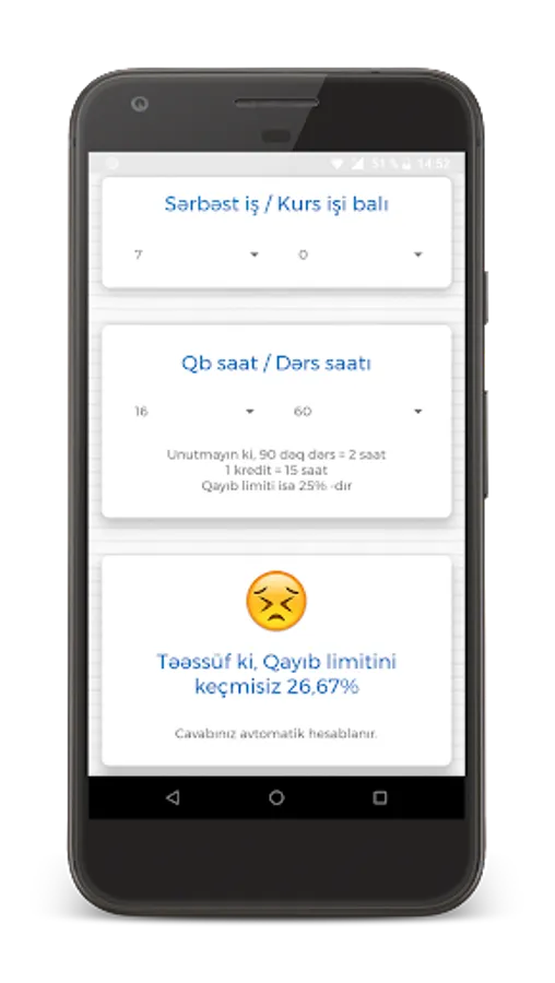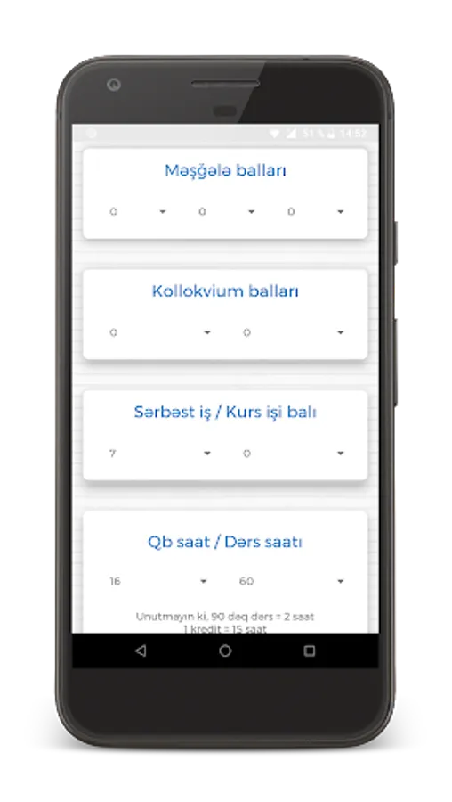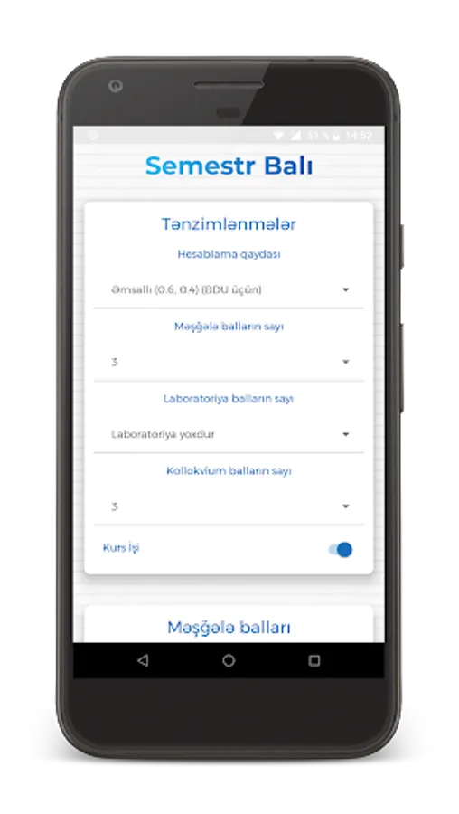 In the application, you can adjust the number of points you earned for the semester (maximum 8), Course work and Laboratory scores and adjust the calculation mechanism.