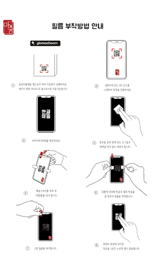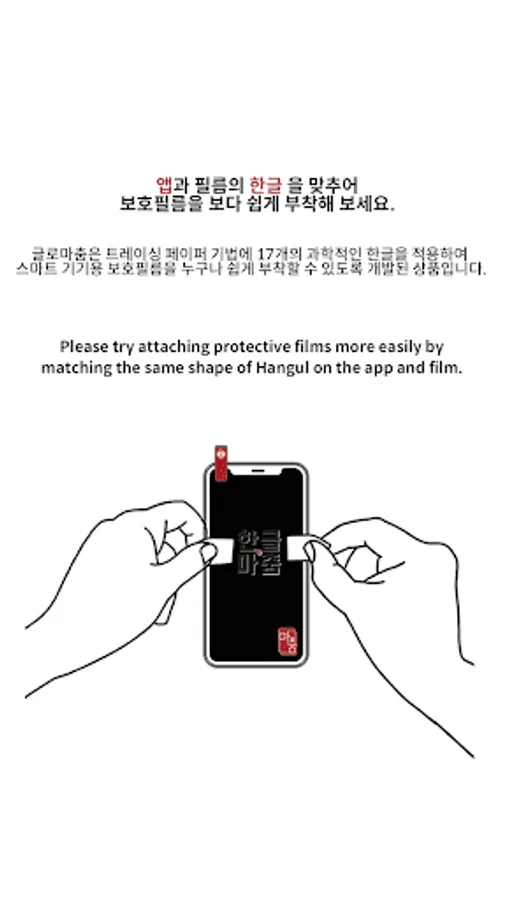 앱과 필름에 있는 같은 모양의 한글을 서로 맞추어 보호필름을 보다 쉽게 부착해 보세요.