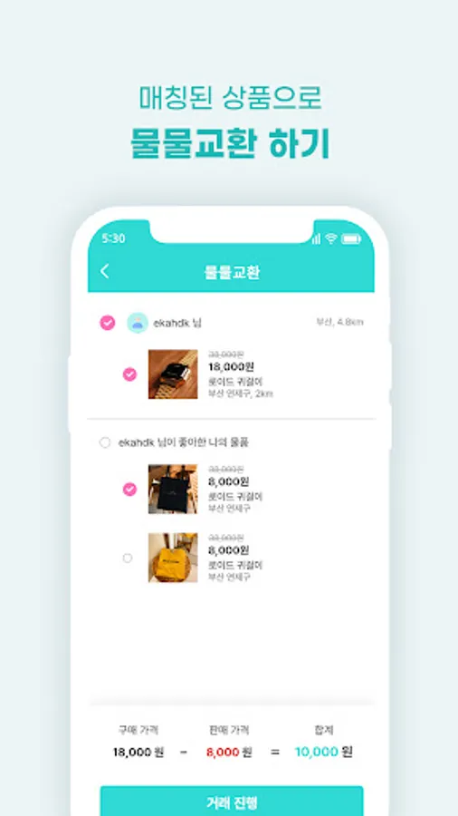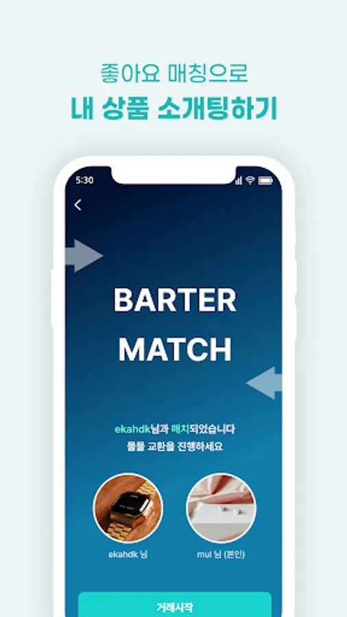 내 물건을 소개팅 시키고, 물물교환 할 수 있는 중고마켓이에요.