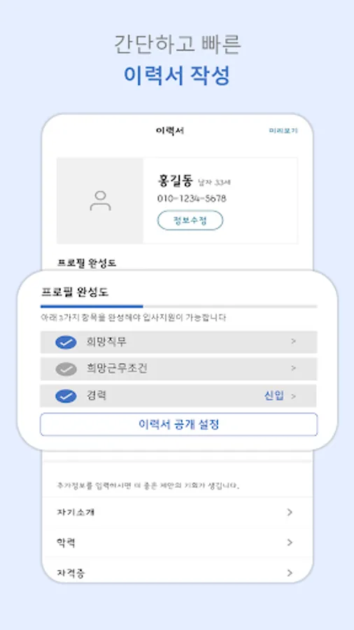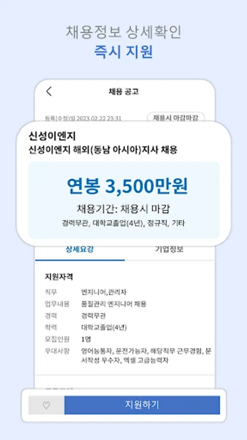 Provides search functions with desired conditions such as keyword search, job search (region/job type/recruitment details), and company search
