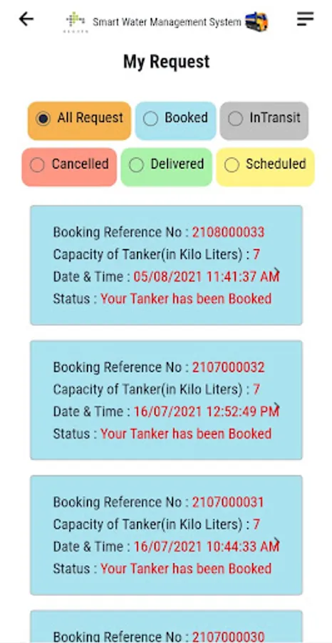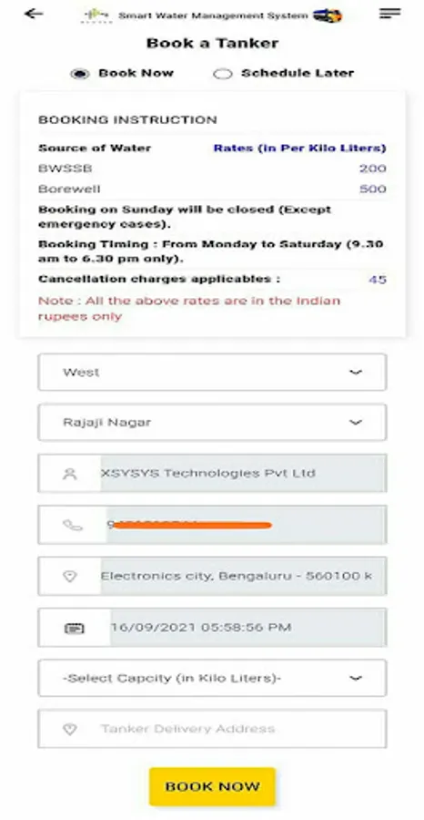 ELCITA Company Registration App facilitates the company users to request water tanker. Users are provided with Credentials for authentication purpose. This app provides the functionality to Cancel the Request, Schedule Request and Repeat Request etc. Once the tanker is delivered to the address, the driver has to verify the details provided by the user to complete their trip.