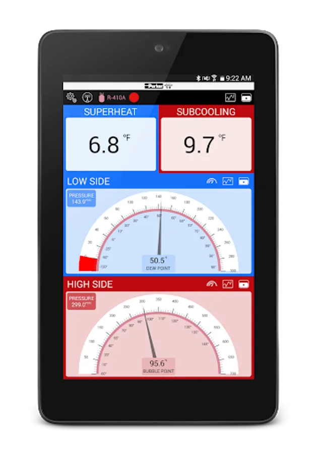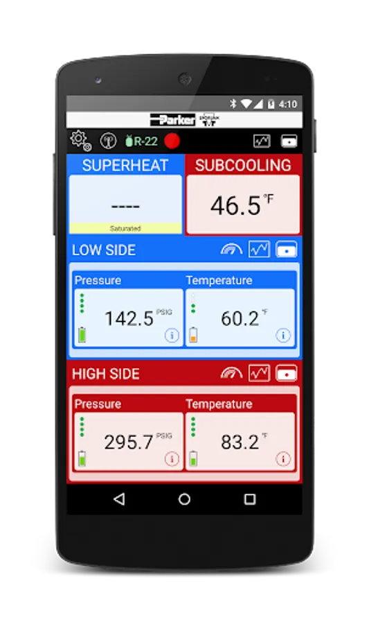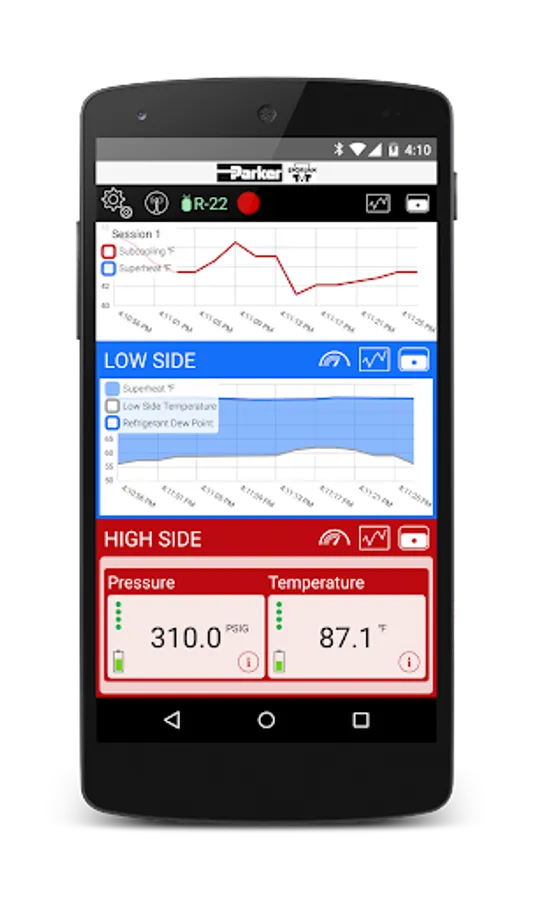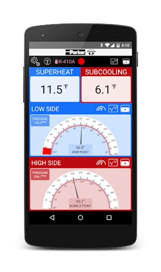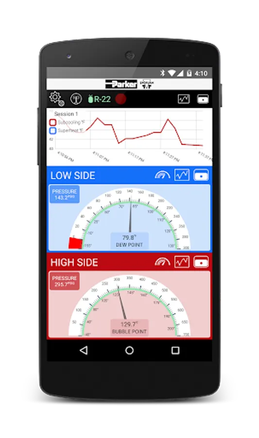 The Parker Sporlan SMART Service Tool, along with unique Bluetooth Low Energy sensors, allows quick pressure to temperature conversion and automatic calculation of superheat and subcooling by utilizing essential refrigerant data in the app.