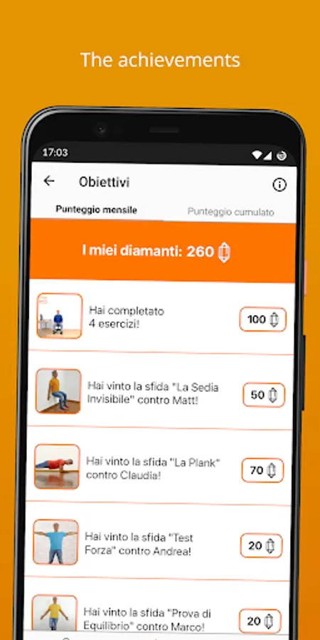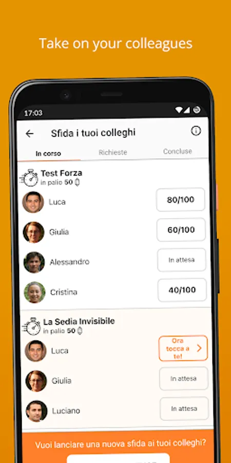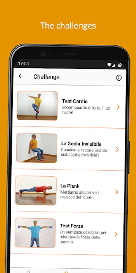 Check your improvements with the Challenges. More than 100 special exercises to test your new skills of endurance, strength, balance and elasticity. And when you feel ready, send the Challenge to your colleagues! Invite them and compete with them to find out who's the best.