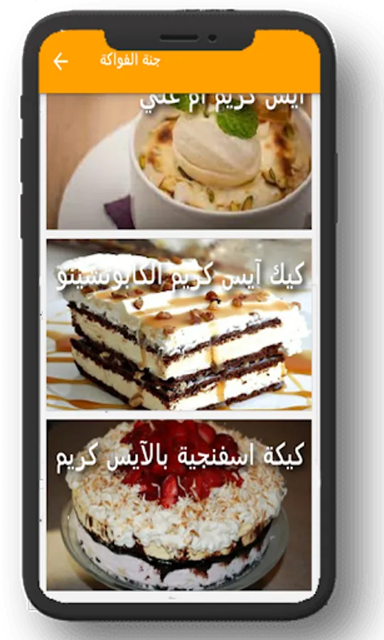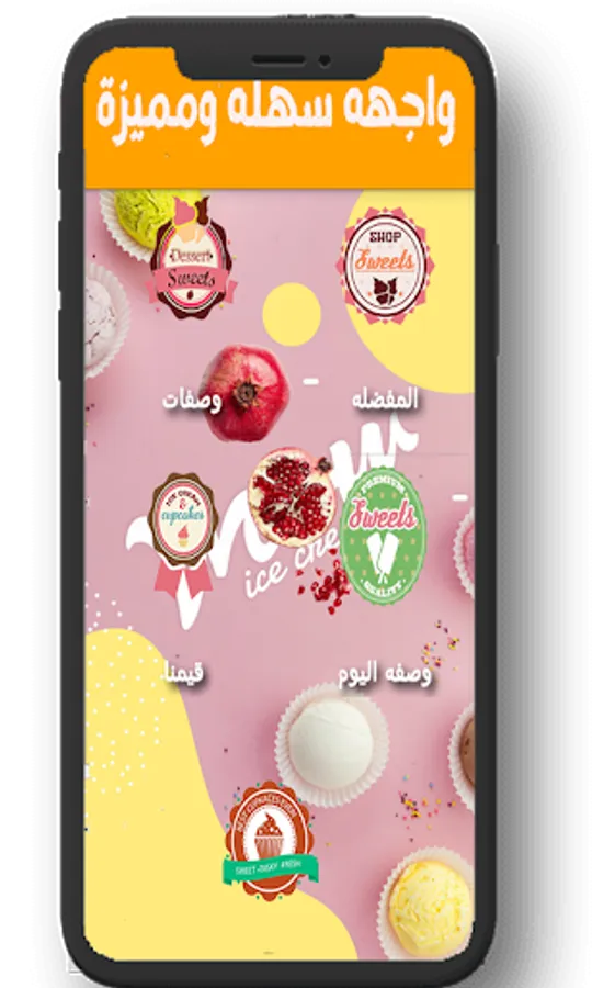 اقسام التطبيق ومايحتوى على وصفات ايس كريم