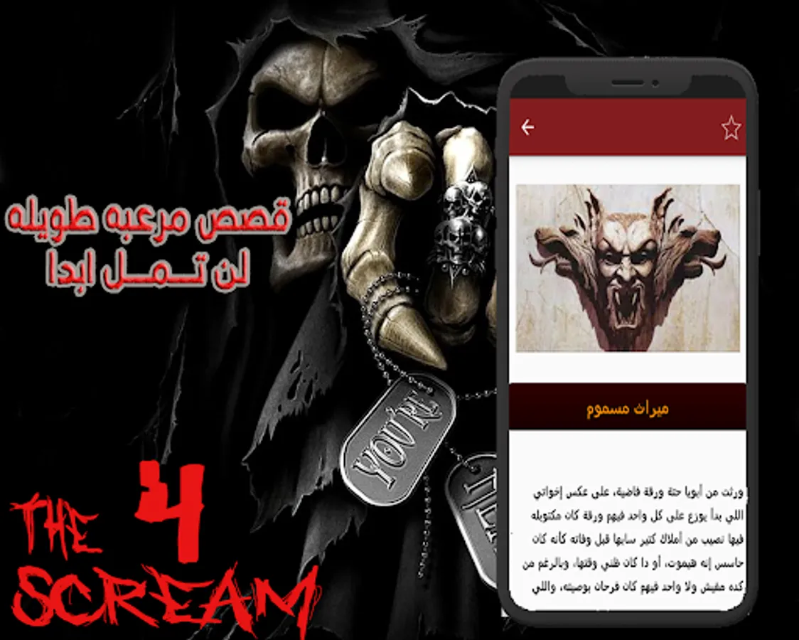 Horror stories for adults Part IV The fourth part has been launched for you and for your enjoyment and in order to meet your request and the application has also been updated, becoming a modern, easy, fun and terrifying interface