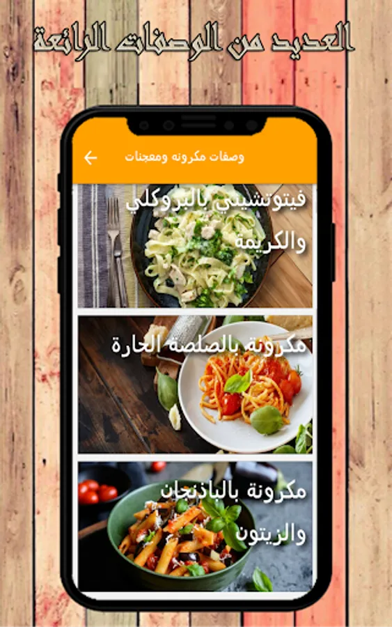يحتوى تطبيق وصفات مكرونه ومعجنات على