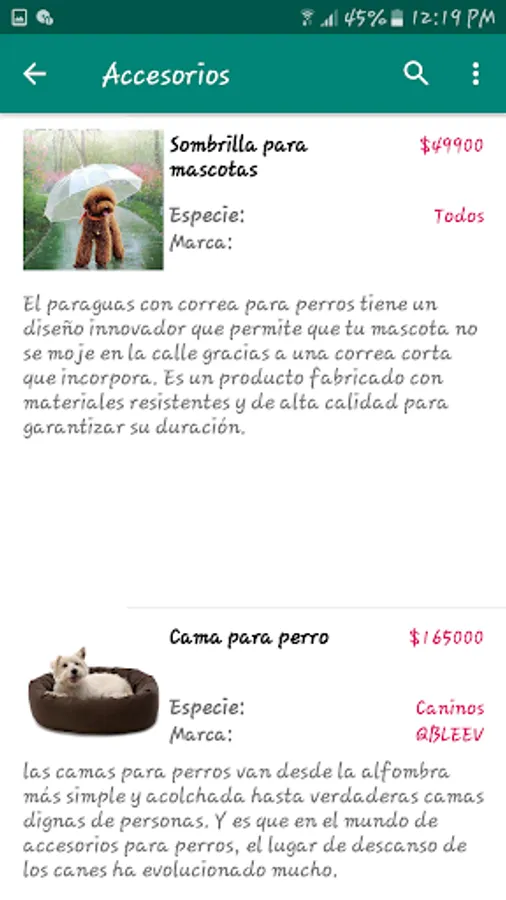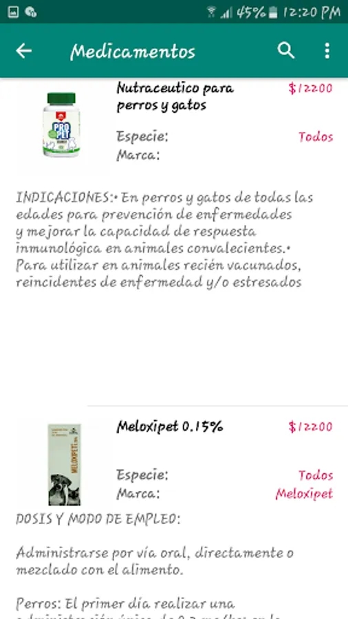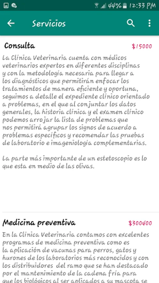 We can find a variety of information on services, accessories, food and medicines, you can also register your pets to help the veterinarian keep track of them.