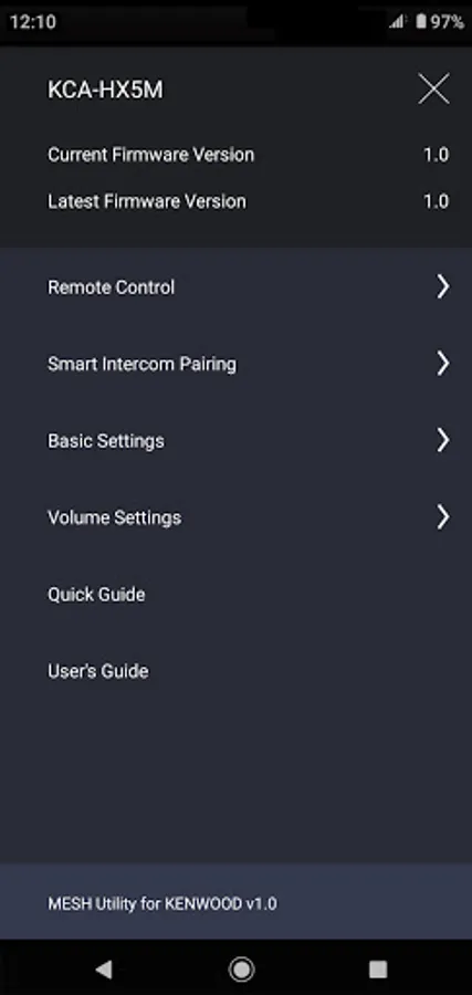 Take control of your Kenwood KCA-HX5M device from the palm of your hand with the convenient and easy to use MESH Utility App. The MESH Utility App allows riders to easily manage and navigate through the device’s settings straight from your smartphone. You can also simply turn the Mesh Intercom feature on and off, and change modes between Open, Group within the MESH Utility App.The MESH Utility App makes it simple to create a Mesh, quit or join a Mesh and even turn the mic on or off.