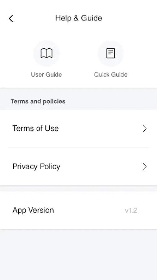SMART HJC BT App allows you to manage intercom groups, configure device settings, save up to 3 Speed Dial presets, save up to 10 FM radio station presets, and view the Quick Start Guide and the User's Guide.