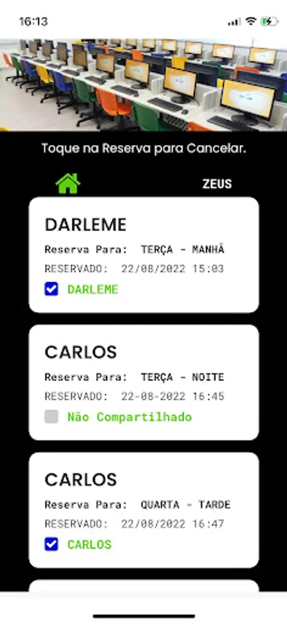 Application to Book the Computer Laboratory, implemented by students of the Technical Computer Course Classes 099/129 and 212 of CEP Lavras - MG. SENAC - Brazil - 2022