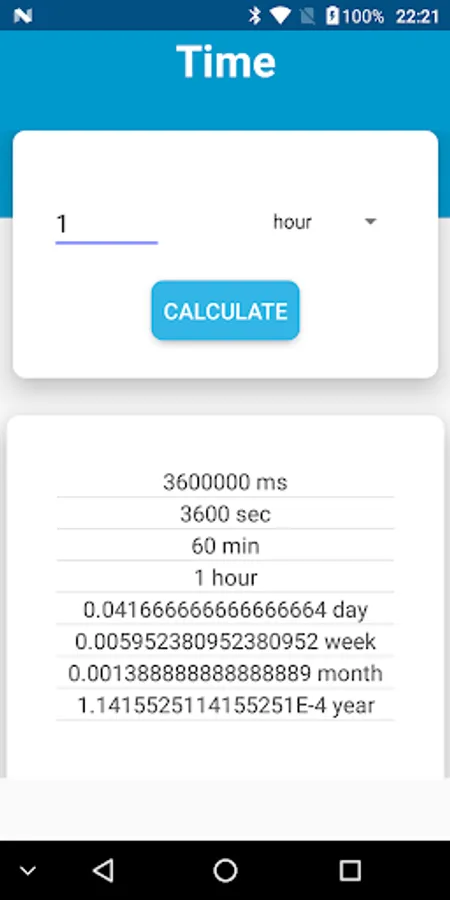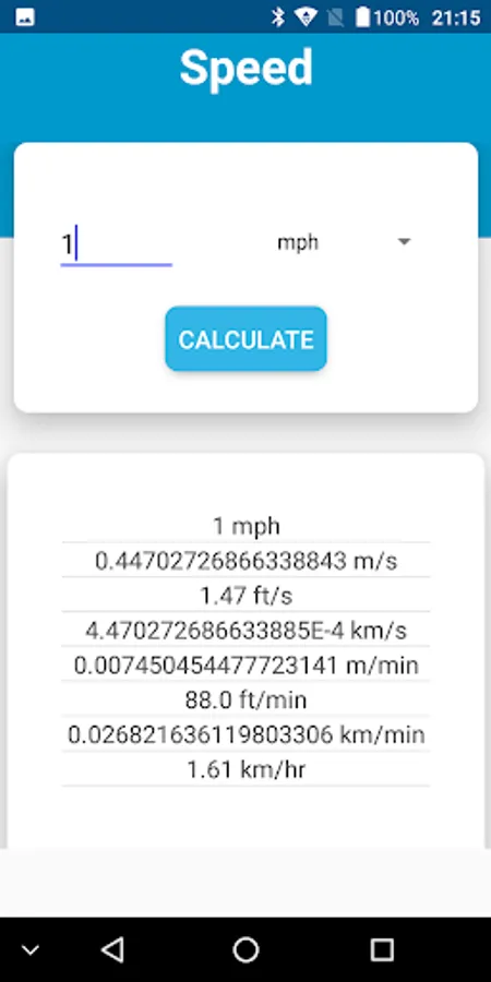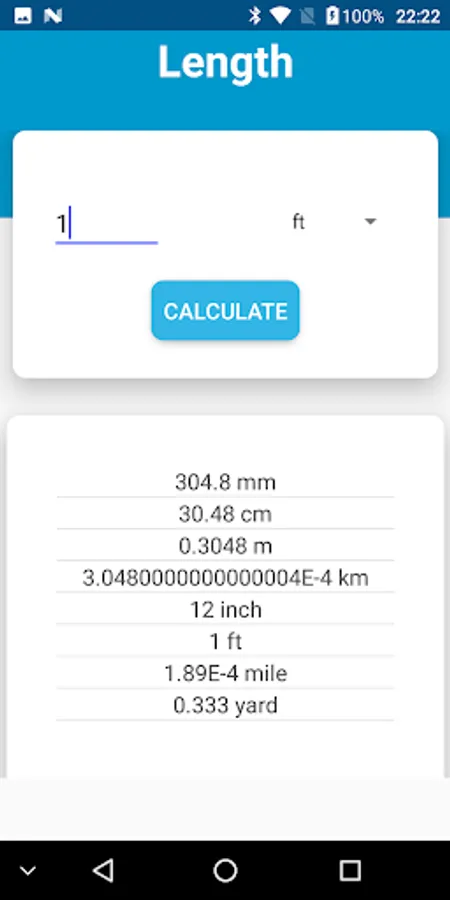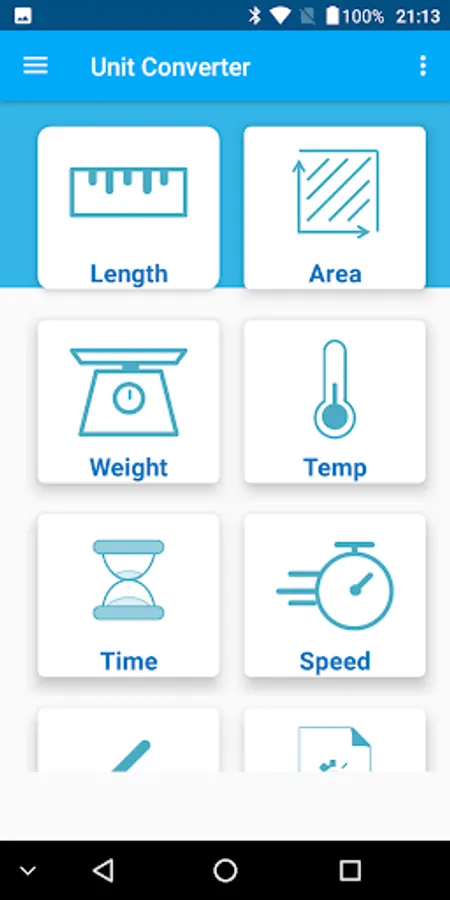 Supports Length, Area, Weight, Temperature, Time, Speed, Angle and Data.