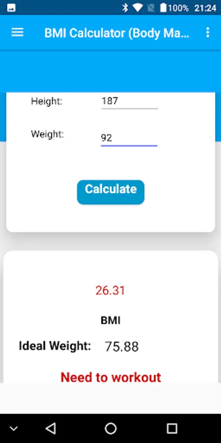 Health is calculated on the basis of users BMI (Body Mass Index). The Users can also see their ideal weight.
