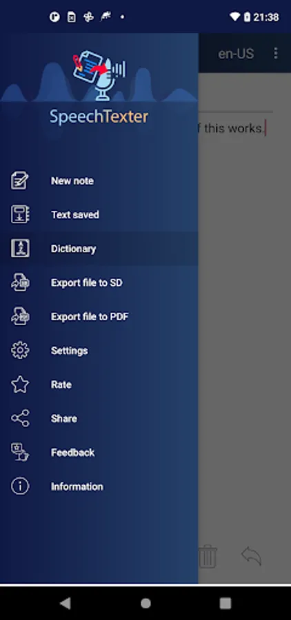 - Supports saving and exporting text files that can be converted to PDF format or transferred to SD card.