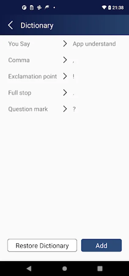 - With custom dictionary. You can set up custom commands including punctuation, phone numbers, addresses.