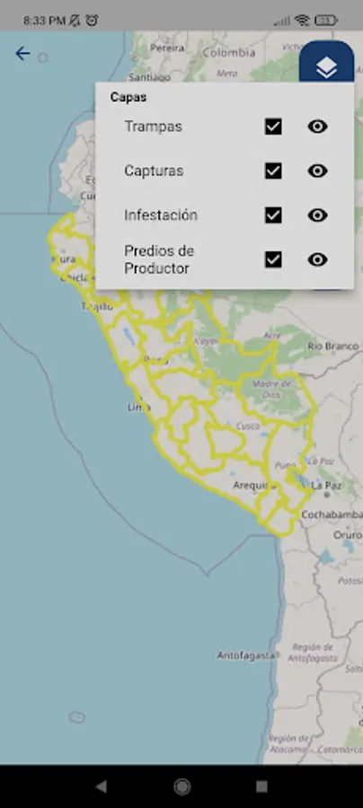 The mobile application Fruit Flies – Producers of SENASA will allow fruit and vegetable producers in Peru to monitor the Capture and Infestation of Fruit Flies on their farms, visualize the MTD limits for export programs; likewise, they may consult and report incidents in the field to the field specialists; it is necessary for the producer to keep his Producer Registry up to date in order to have this information.