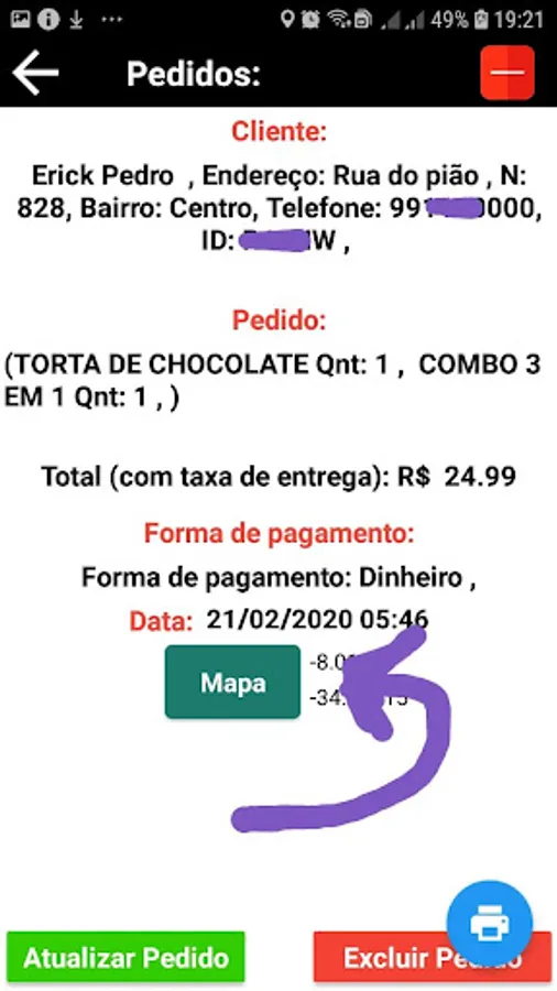King of Delivery administrator app, where it will be possible to make all the necessary modifications to manage your business, giving more autonomy, practicality and speed in the service of your customers, with GPS coordinates to facilitate the location of the order and also the sending of requests to whatssapp for better management!