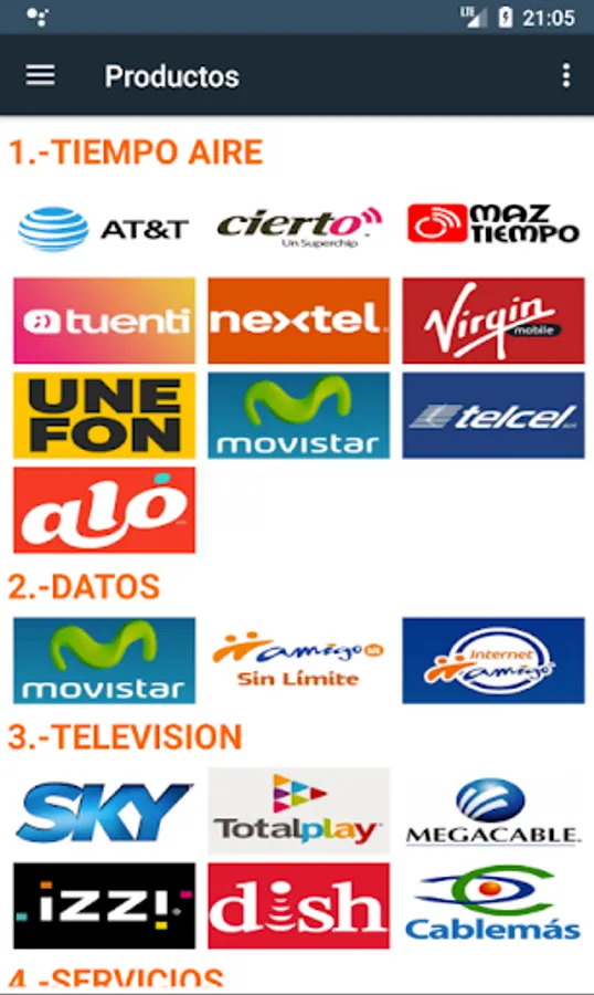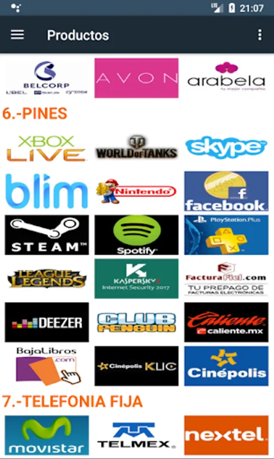 - Multi-brand air recharges at national level (Telcel, Movistar, At & t, Unefon and many more ..).