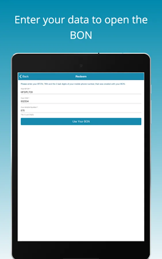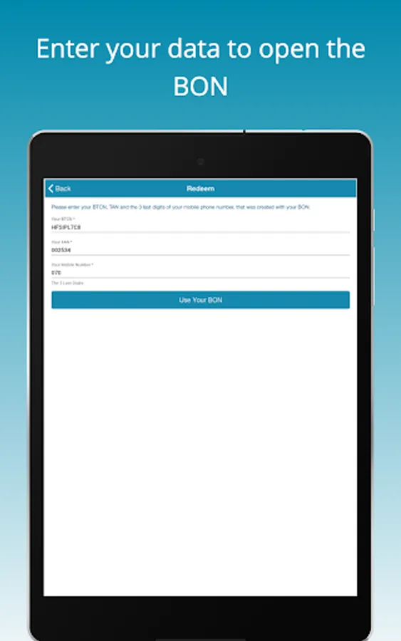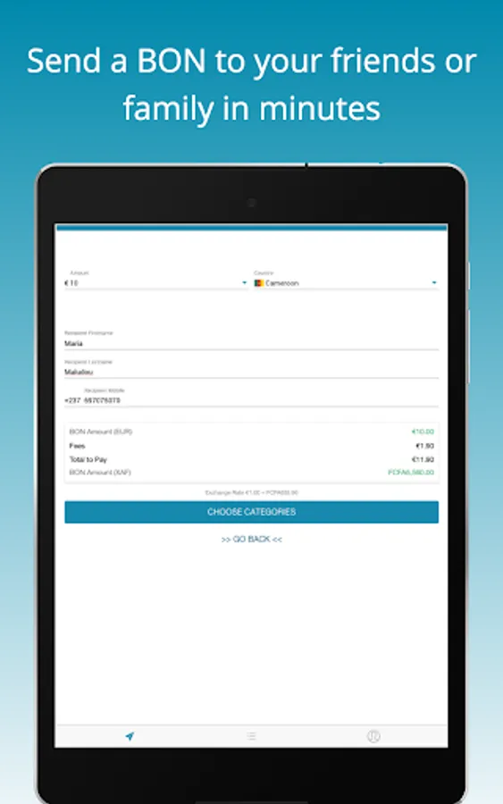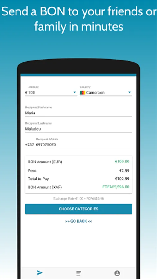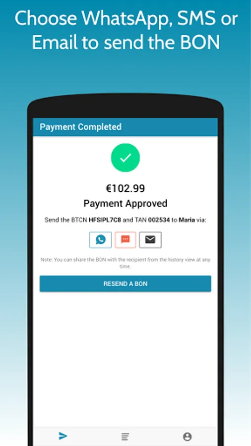 - BON can be sent or shared by EMail, SMS or WhatsApp
