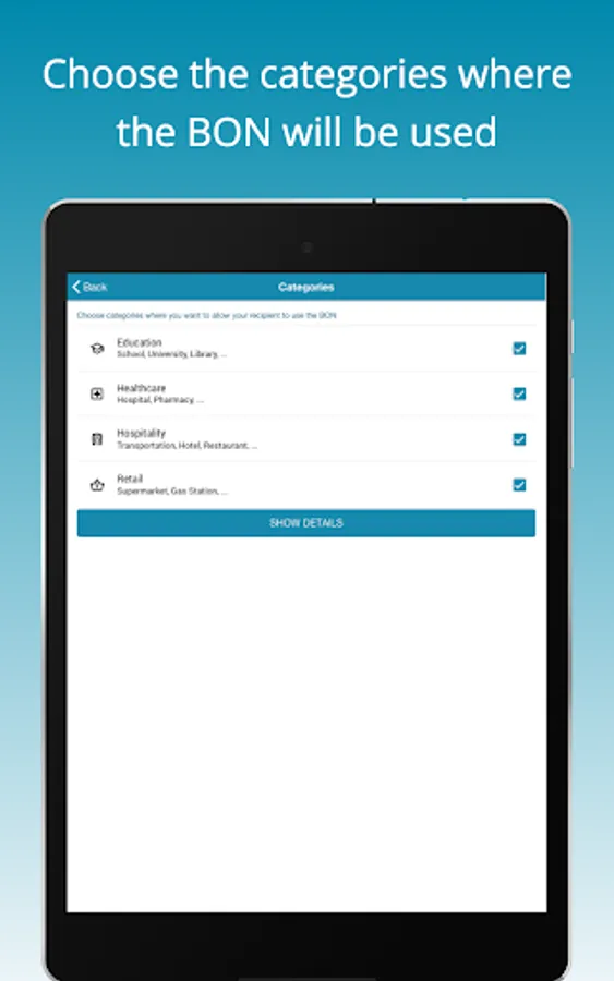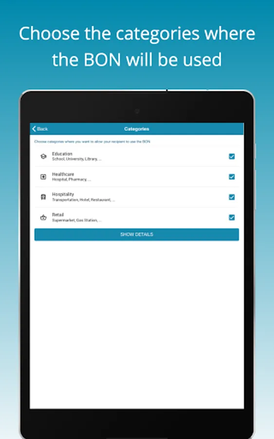 - BON can only be used at the following categories (Education, Healthcare, Hospitality and Retailers)