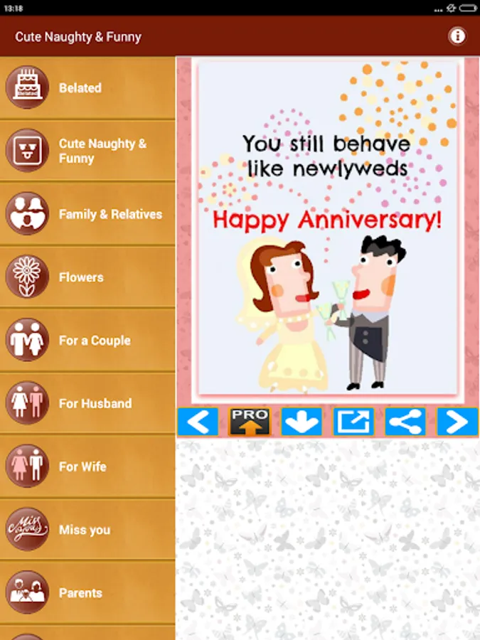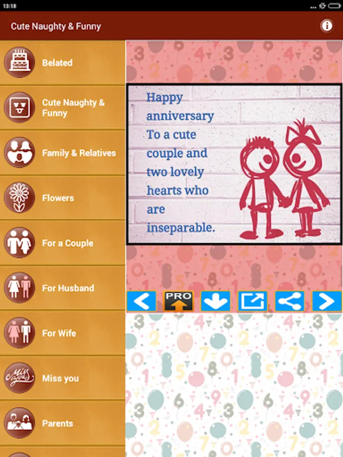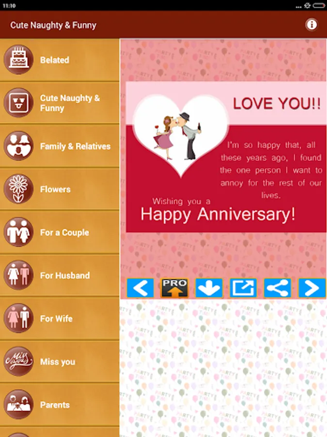 This App also has Collection of wedding anniversary wishes and marriage greetings with best messages and Quotes Images for all relations including Naughty and Funny for Daughter-in-Law Son-in-Law Mother-in-law Father-in-law Sister-in-law or Brother-in-law and anyone else.