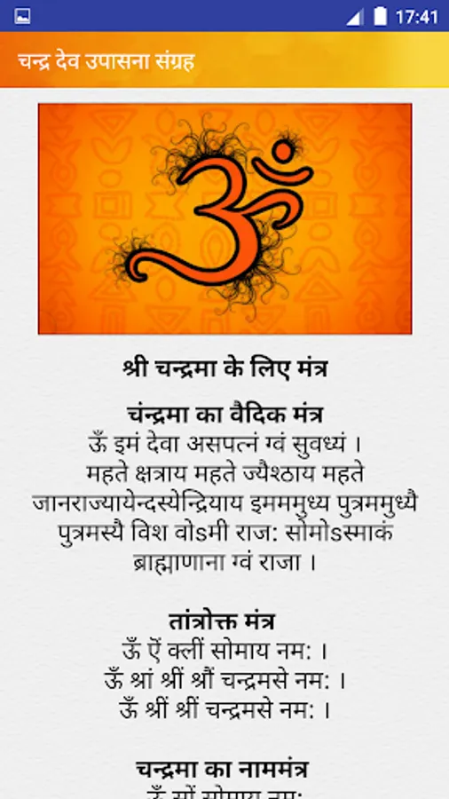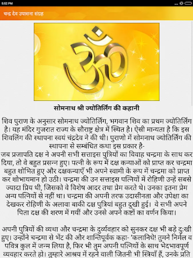 This is a free android app which contains complete collection of aarti chaalisa mantra katha and pooja sadhna vidhi of lord Chandra Dev or The Moon. Lord Chandra is one of the most worshiped God of the Hindu Pantheon. Chandra, The Moon, is a lunar deity and is also one of the nine houses (Navagraha) in Hinduism. Chandra is synonymously referred to as Soma.