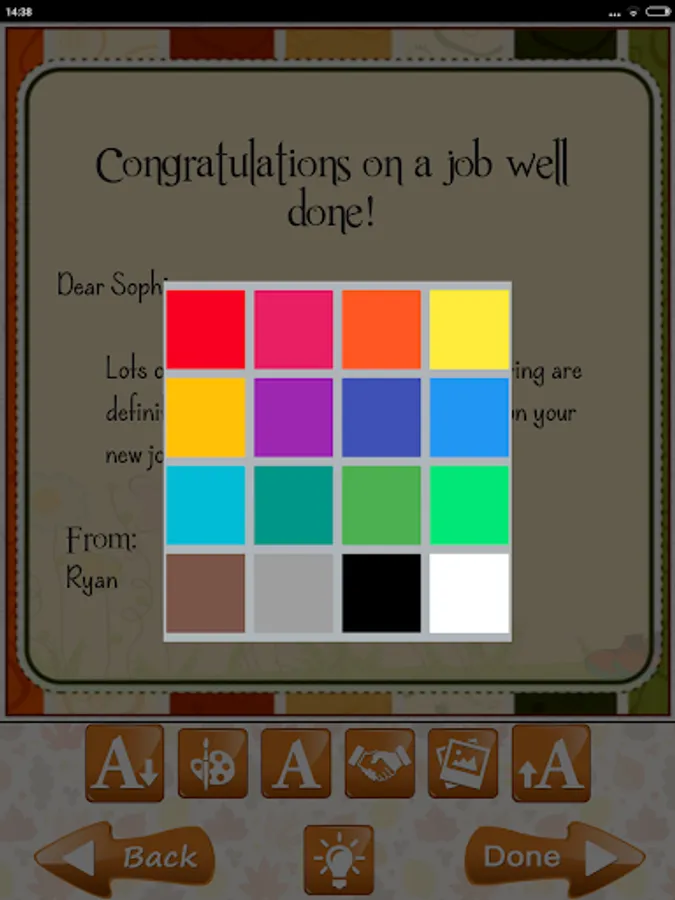 * Change the colors of your text boxes and text to add extra cosmetics to your card.