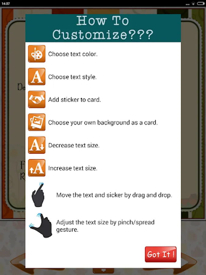 * Change the fonts and choose from verity of inbuilt fonts that we have preloaded in our app. You can also choose font colors as per your choice.