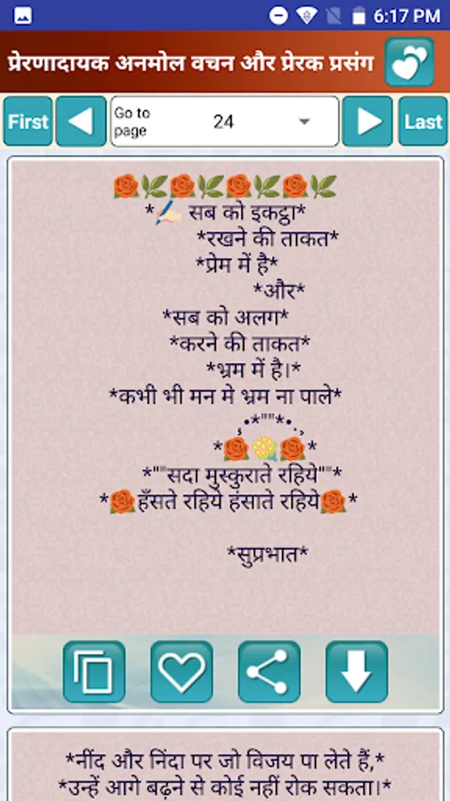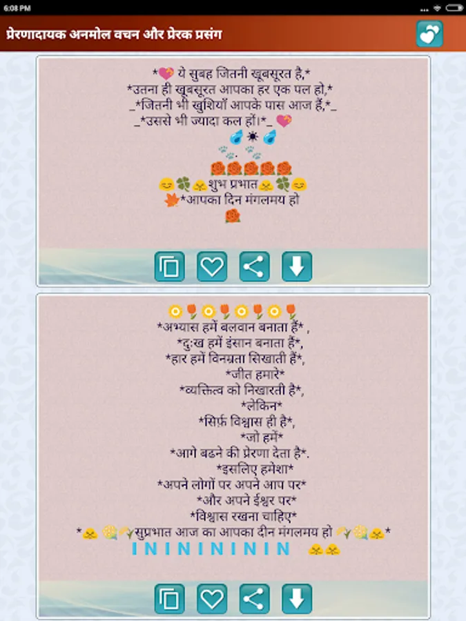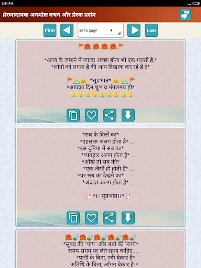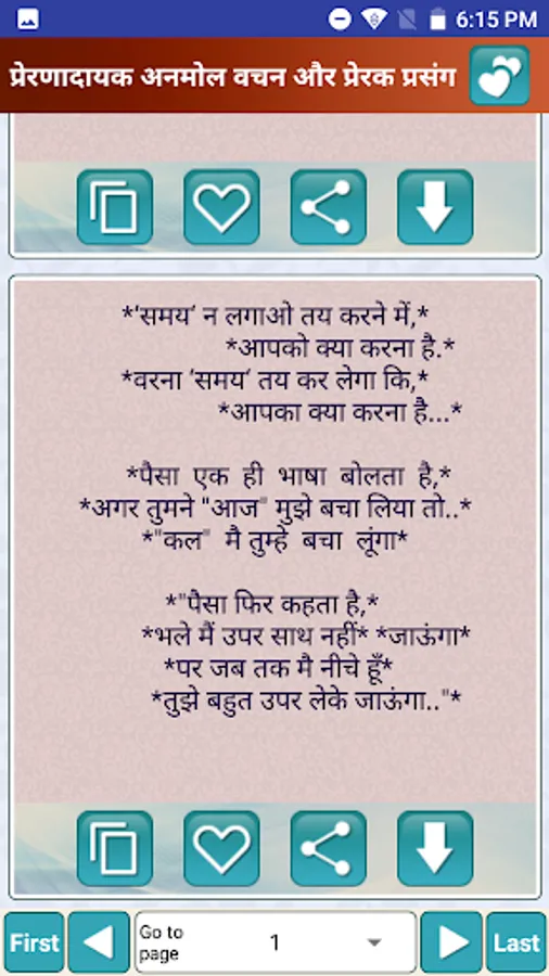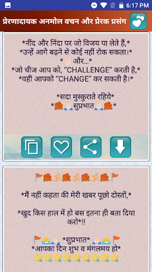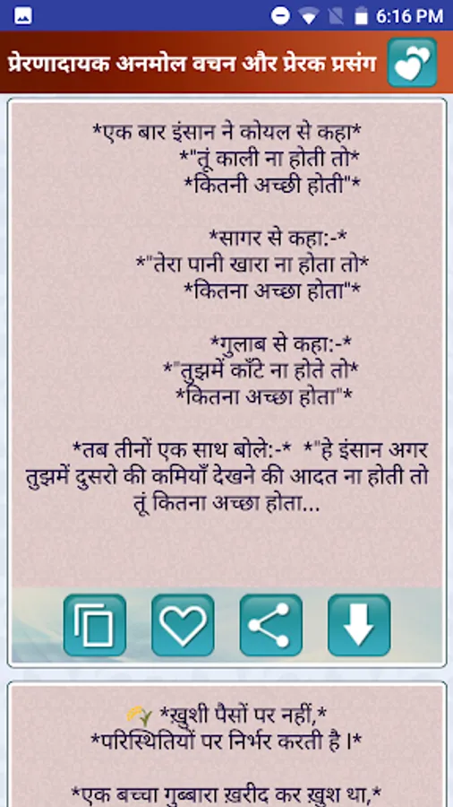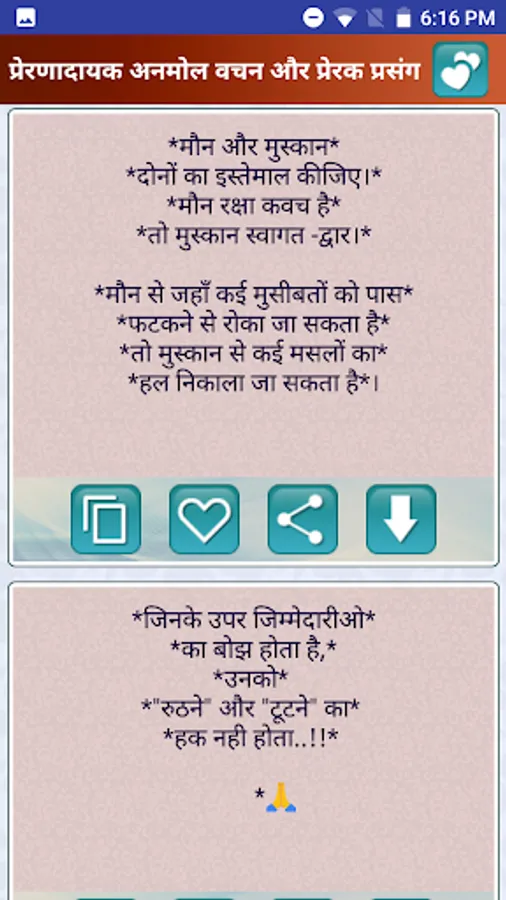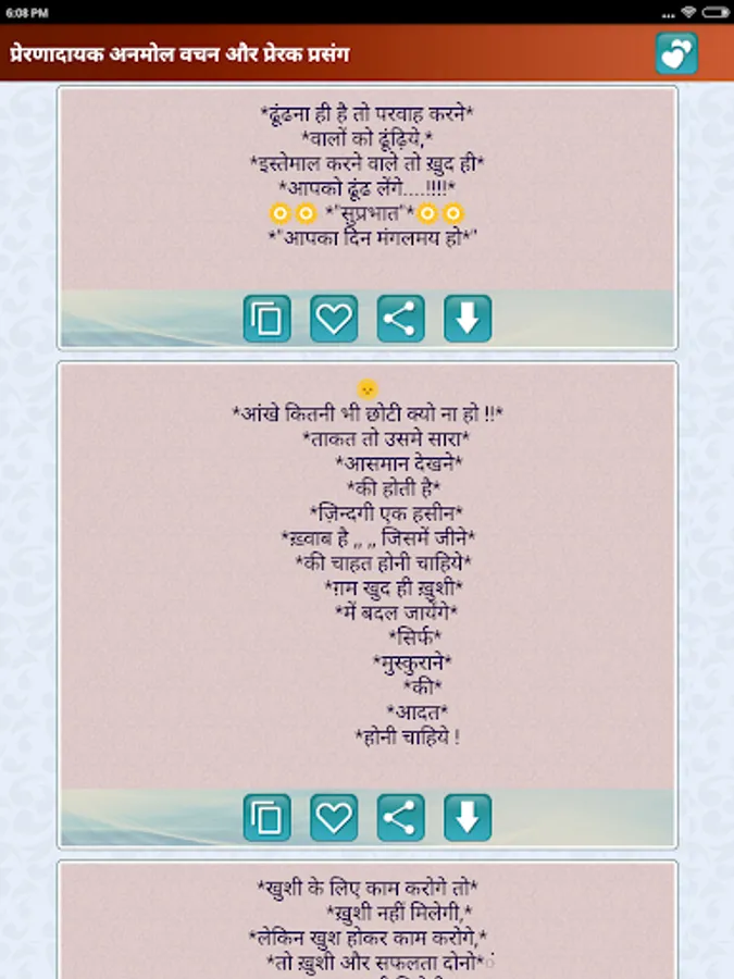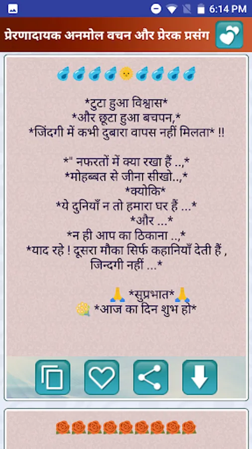 इस एप्प के मेसेज को पढ़कर आप मोटीवेट होंगे और जीवन मैं तरक्की करेंगे| हम लोग जीवन मैं किसी ना किसी वक़्त पर निराश या मायूस हो जाते हैं और उस वक़्त हमे motivated होना चाहिए, प्रेरणादायक अनमोल वचन हमें जिन्दगी को सकारात्मक तरीके से जीने में मदद करते हैं.