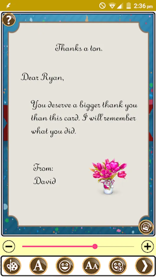 2. Change background and image on greeting card or you may upload your own image and background as you need it.