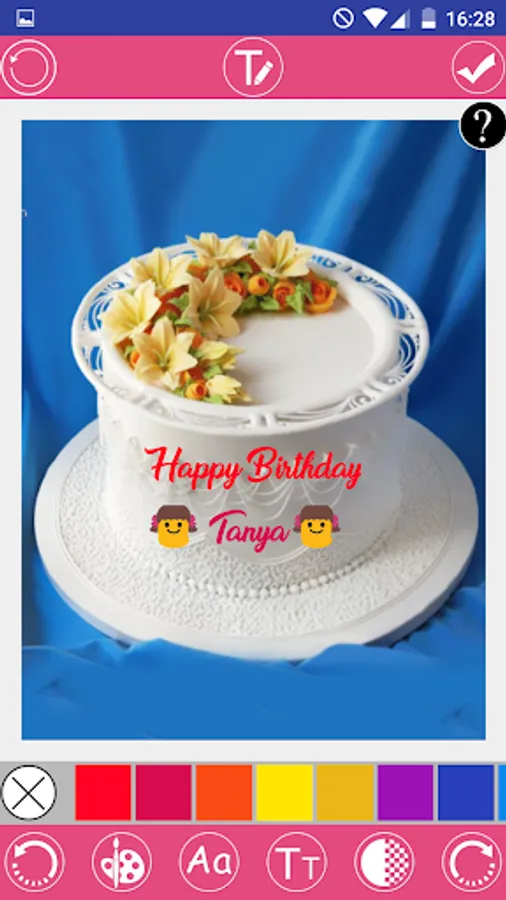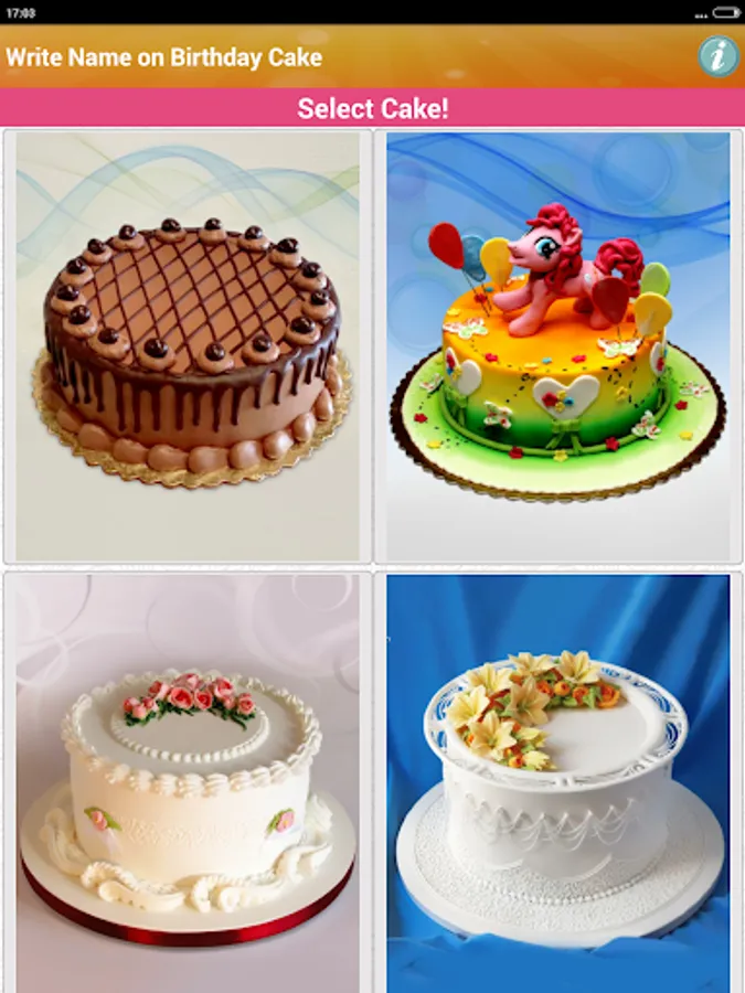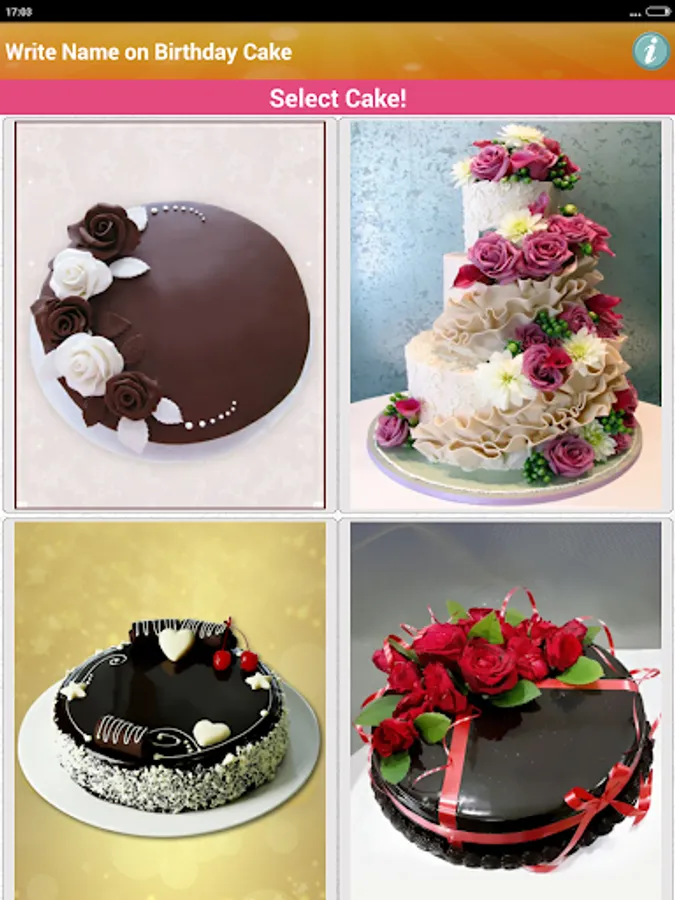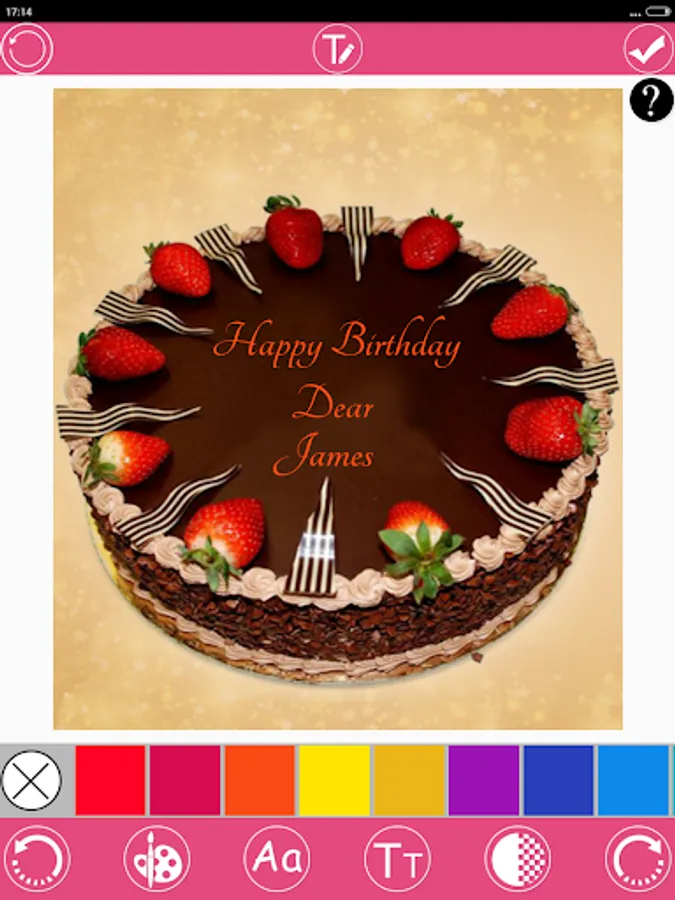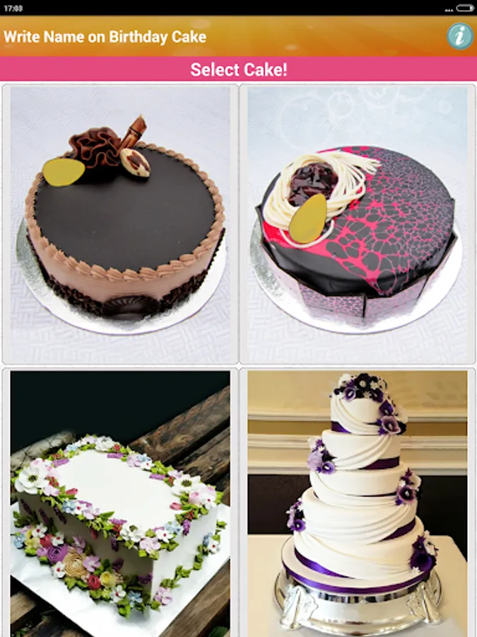This Free app allows you to Write Name on Beautiful cakes & Send Bday Wishes Greeting Card Images as Cake Photo to friends & family. Choose Cake Picture of your choice from available cakes from templates library of app and add texts of your choice to your pictures using different fonts in just few Taps.