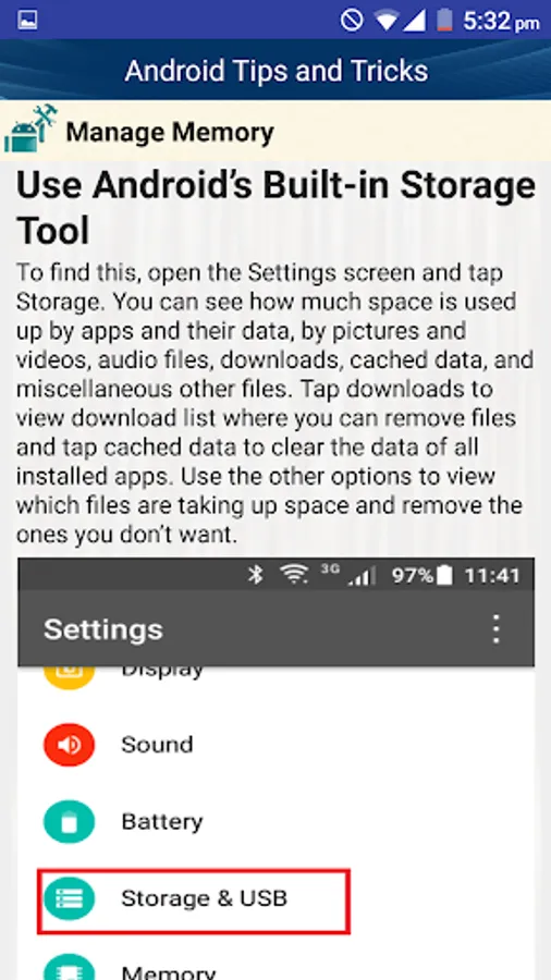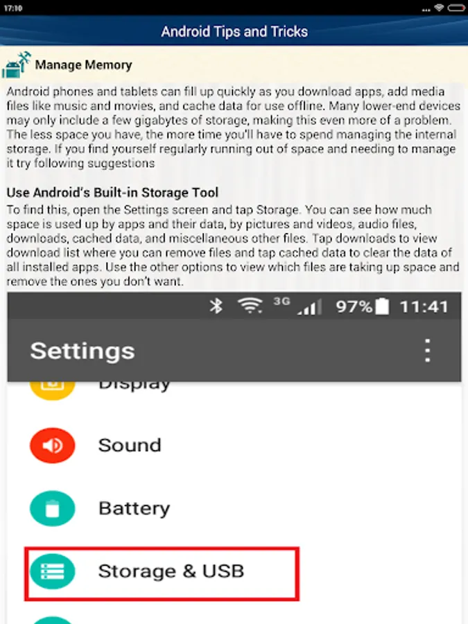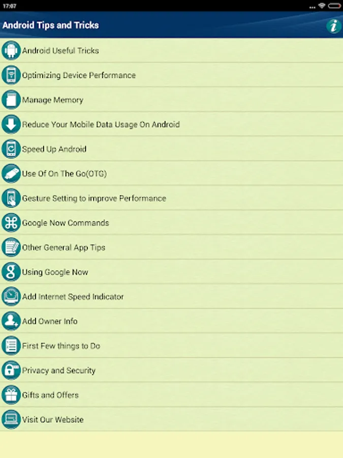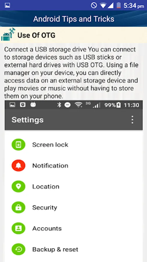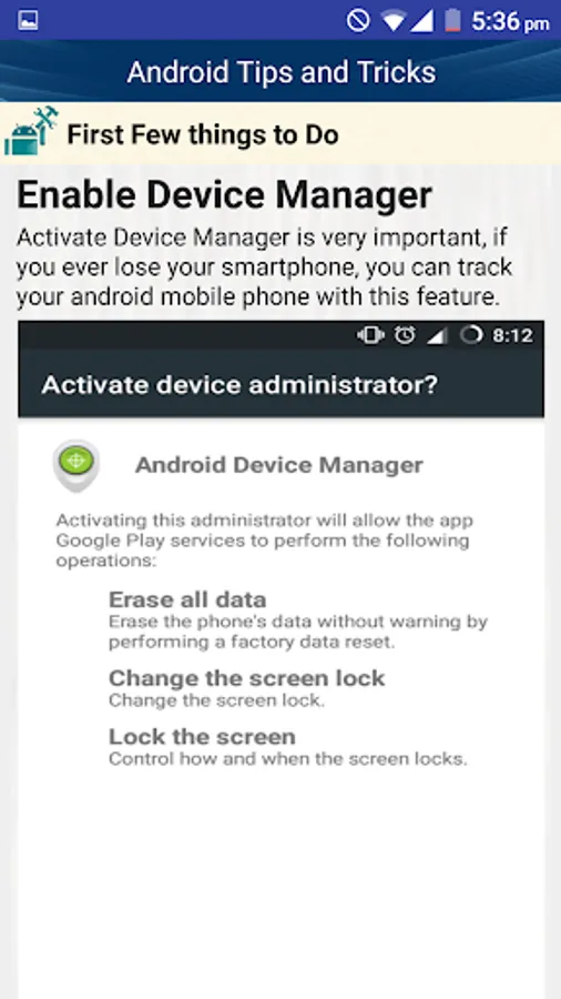 Tips Tricks for Android Phones is a free android app and Compilation of Tips and tricks related to using your android mobile device like a boss and making most out of it. All includes information and Help for Android Phones and Tablets Tips & Tricks Optimizing Device Performance Memory Data usage Speed etc. How to use your backup saved on mobile device internal storage or SD Card or saved Google drive and how to restore it.
