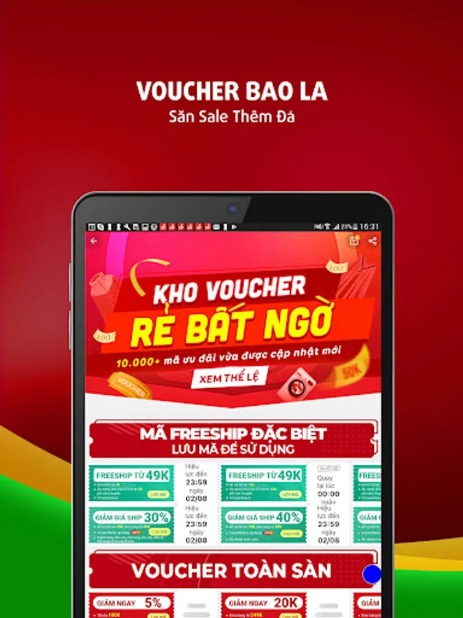 - The application helps customers to shop with peace of mind anytime, anywhere, save with DISCOUNT CODE & FREE SHIP available all day.
