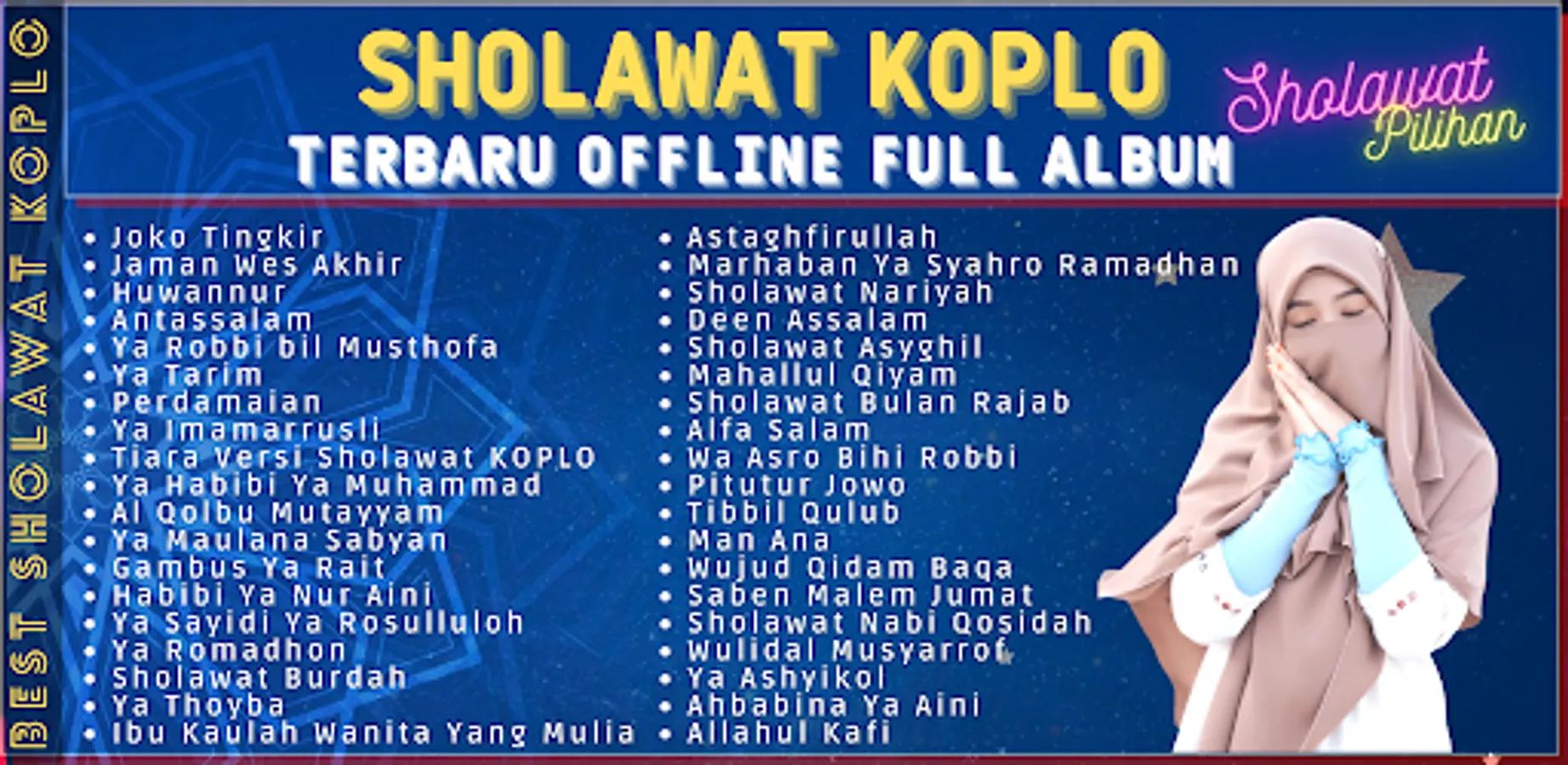 This Latest MP3 Sholawat Koplo Full Album application is a collection of mp3/audio sholawat (prayer) chanting applications, which are very melodious and fun to make you addicted and not too late.