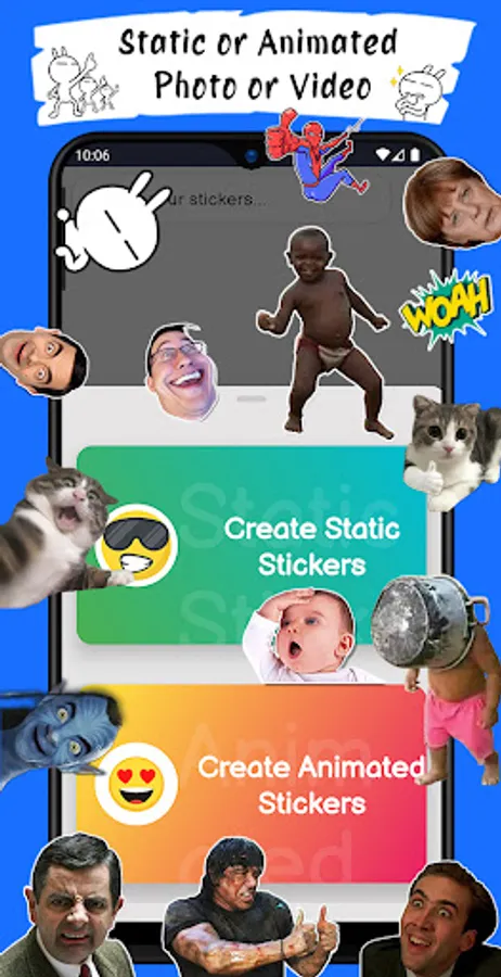 Make funny WhatsApp stickers animated, turn your videos into WhatsApp animated stickers, custom create your own stickers for WhatsApp.