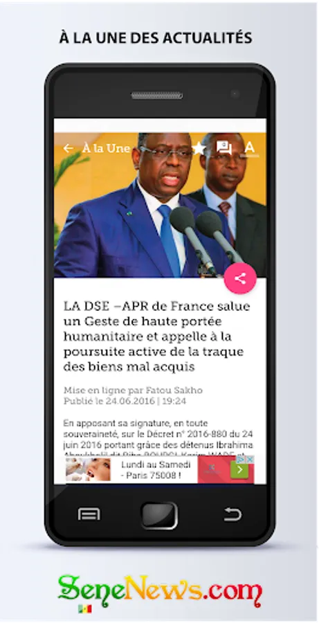 SeneNews.com is Number 1 news on Mobile Senegal. FREE download from the Apple Store and Google Play