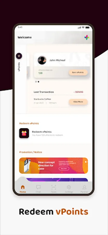 A lifestyle App for users to pay for merchandise at participating merchants and earn points for redemptions.
