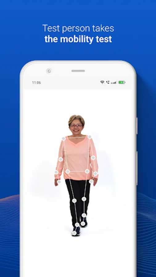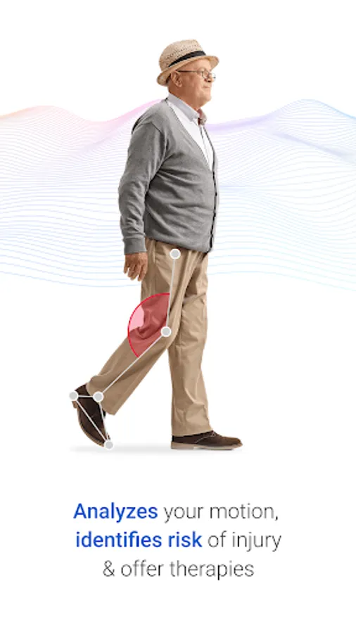 SeniorLife app assesses the risk of injury by analyzing motion with AI. The app is used by a care provider to assess health risks in both active and frail seniors. The app offers many types of “mobility tests” that use physician recommended methods. Using computer vision and other proprietary algorithms the SeniorLife App analyzes mobility patterns, generates a detailed scorecard and predicts specific health risks. The app recommends corrective therapies. When tested in regular intervals, one can monitor the condition and measure results of the therapy.