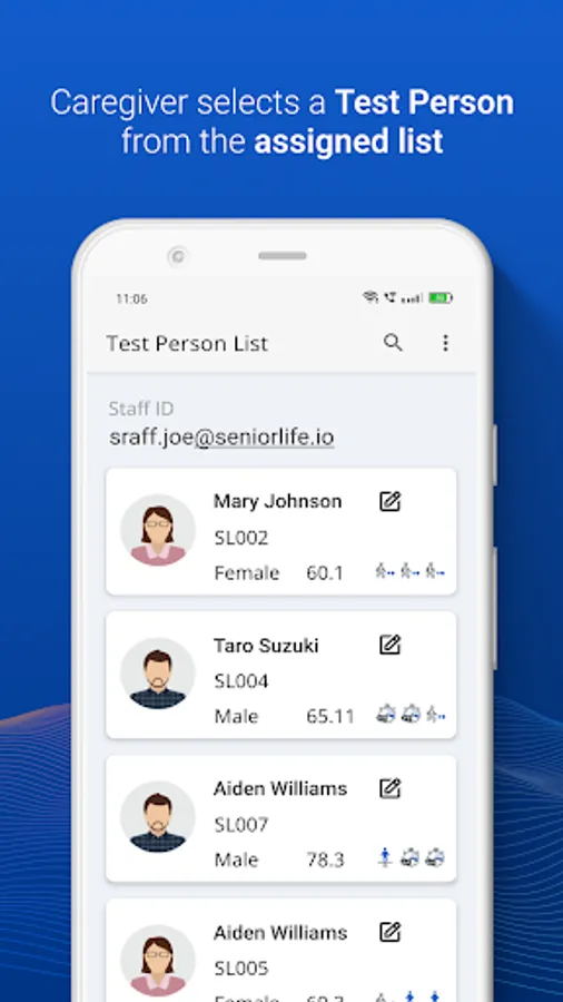 1) Admin registers you – The manager of the service provider needs to register your email and assign seniors that can be tested by your account.