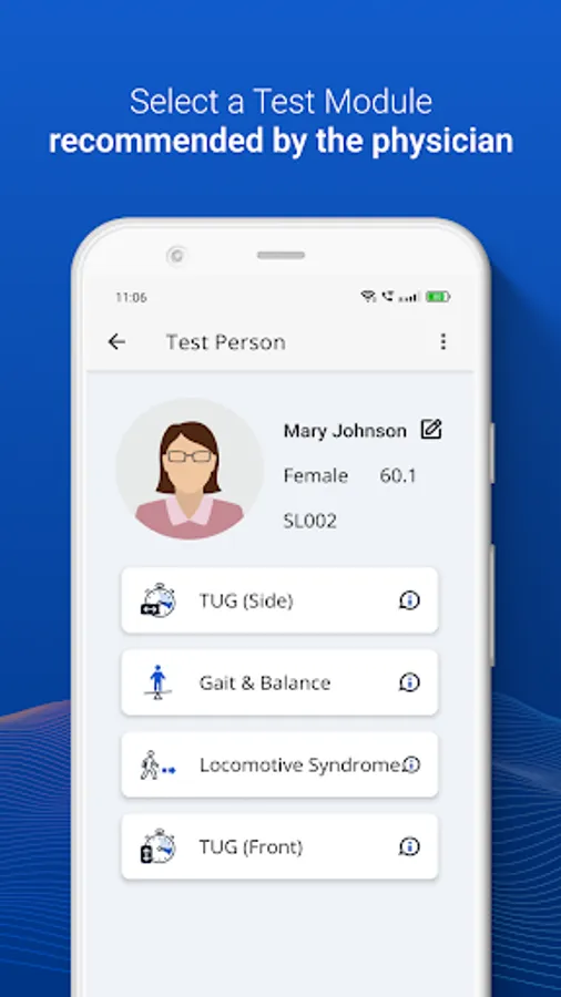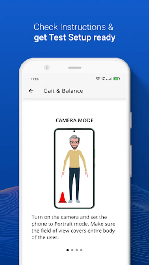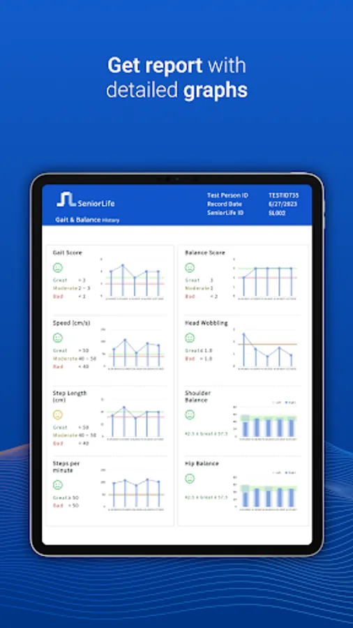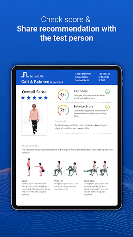 3) Easy to operate, no training required – You just need to download the app to perform a test. We recommend using a stand so that the phone does not move while observing the senior.
