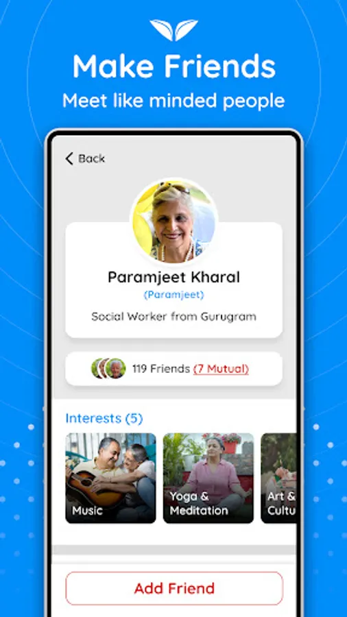 We are India‘s ONLY platform established to cater to the needs of seniors. This is a platform to connect with like-minded people. Express your views on the senior relevant interesting, informative and fun posts and articles that we will be publishing every day. Join events of interest, learn from experts and develop new hobbies. Also keep all your health records and reminders in one place and get an SOS feature on your phone that can be used to stay connected to your emergency support network anytime, anywhere.