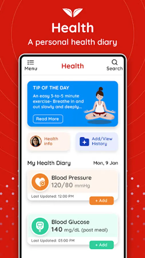 5. Reminders- An easy to use reminder service that can help you set alerts about medicines, appointments, exercise and health records,
