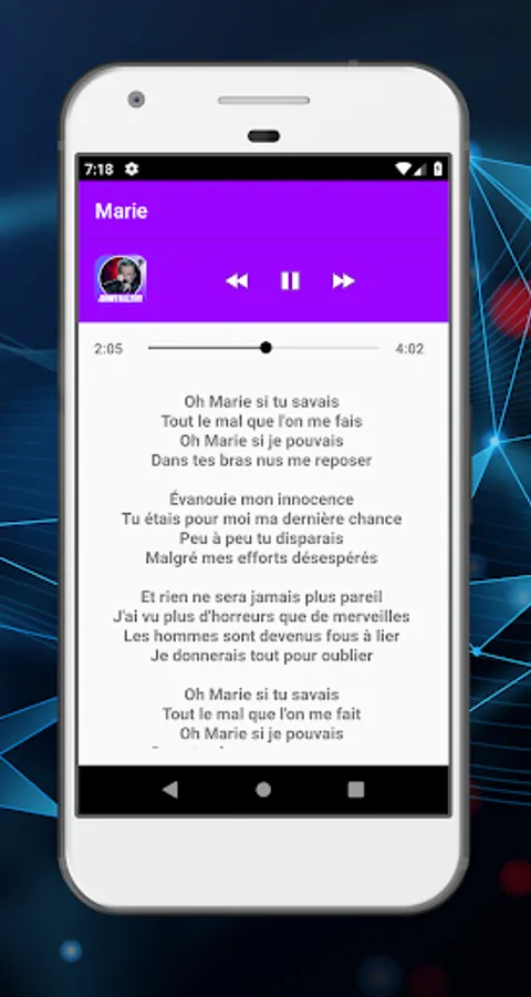 This aplication is player songs Johnny Hallyday, in the application there are lyrics to karaoke when you listen Johnny Hallyday song.